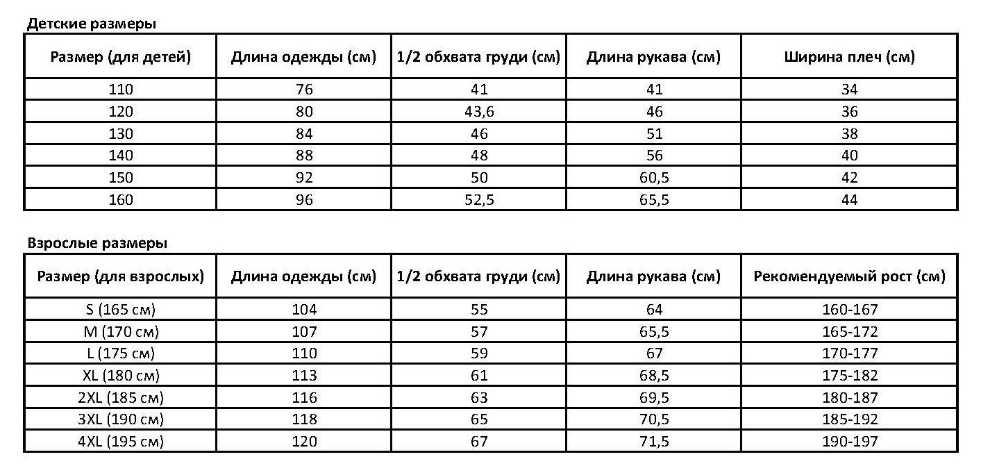 Таблица размеров