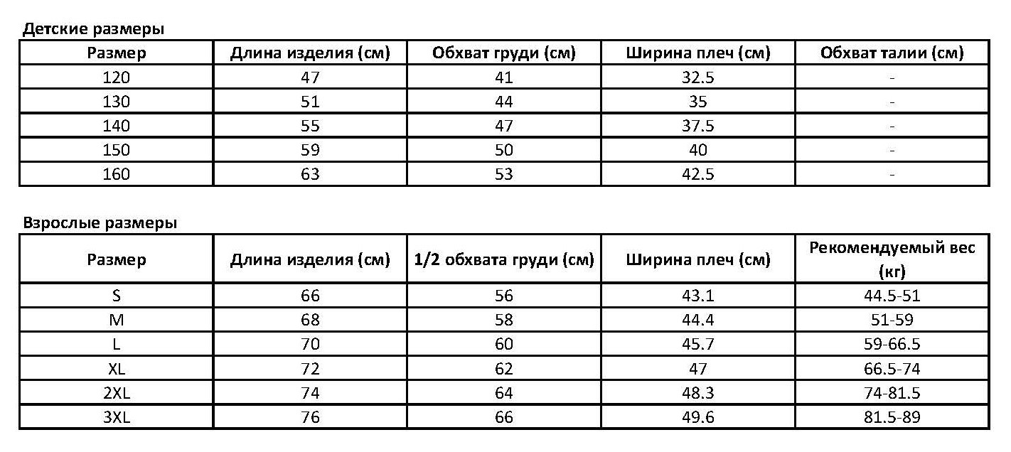 Таблица размеров